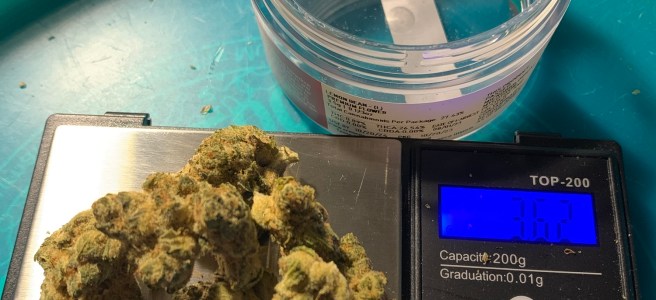 This particular jar of Lemon Bean contained flower weighing in at 3.62 grams. A generous pour, if you will. Hat tip to the grower for that. I weigh most of the eighths I open. I’d say half are right around 3.5g, a third are under or “short”, and the rest are over 3.54g. Cresco has had some generous jar-stuffings among my more recent opens.