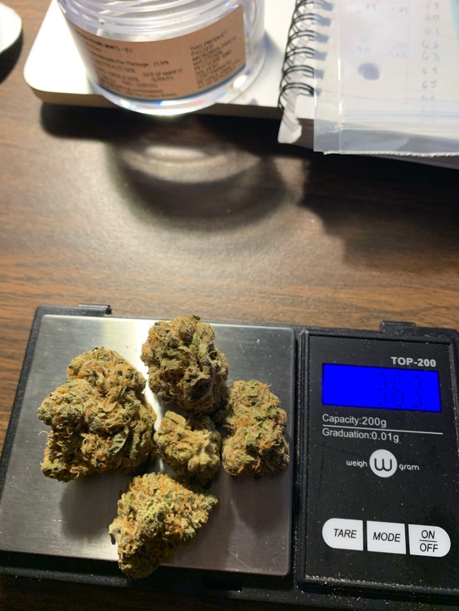3.63 grams of cured, spongy bud that I kept unopened for months. Excellent.