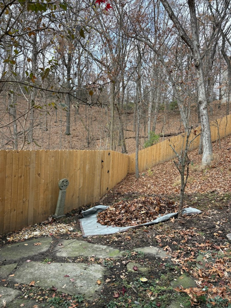 There are a lot of trees around our house; they are mostly through dropping their leaves. I’m putting the leaves on a tarp or in a bag and removing them to a spot down the hill, outside the backyard fence. I don’t want to clean up the same leaves twice.