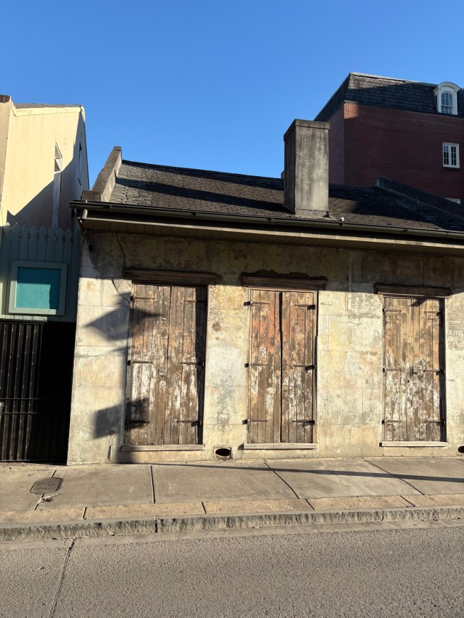 Before I lose the short-term recall or the “present-sense impression” I should say in short that New Orleans was a struggle for me. That’s because of me and not because of the group. I’m just not feeling like Johnny-Go-Lucky Have A Carefree Night on The Town these days. Or maybe those days are over entirely. We had a nice hotel room, and I could have lounged in that room for many more hours than I did. I could have read more, drank less, and felt better. But then I would have had to say no to the social aspect of going on a trip with other people and I didn’t have the courage to do that.