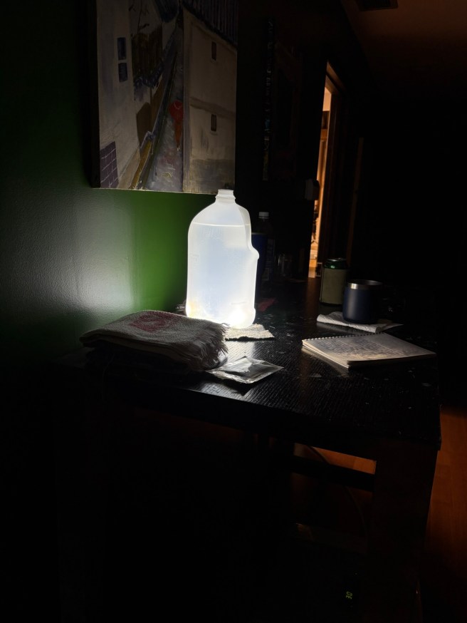 It was a $25 eighth. Some of the tastier bud I’ve smoked in weeks. I feel the effects brewing. It builds up. Behind the knees, in the calf, the left glute, my shoulders. That’s where I’m sore, and how I’m standing. Left side of left shin. I wrangled with a large downed oak for firewood, on a hillside, on a slant. It was going well until my chain hit a rock I did not see. I saw some sparks but I didn’t realize I was hitting a rock. After that the chain was dull and I proceeded to make some lousy, crooked cuts.