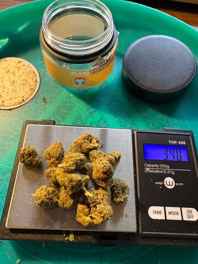 This was the only purchase of Island bud I have made. They shorted me. I weighed it out to 3.4 grams. I haven’t avoided Island; they just weren’t on the Beyond/Hello menu that much in 2025. I haven’t ventured out to any other Illinois dispensaries but I know they are out there (Shiloh, Collinsville, Troy). I also buy in Missouri, New Mexico, and Arizona, so I am trying here and there throughout the year.