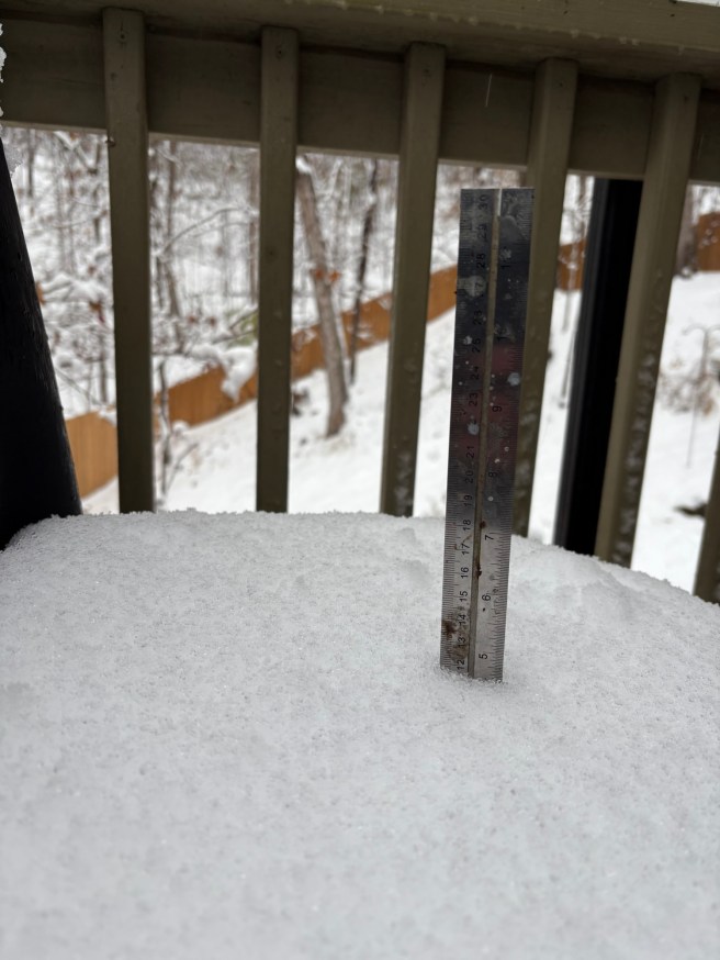 It’s dark out there now. The sun has gone down but the snow reflects what light there is, keeping it a little brighter than it would otherwise be. 16:59, 11.29.2025.