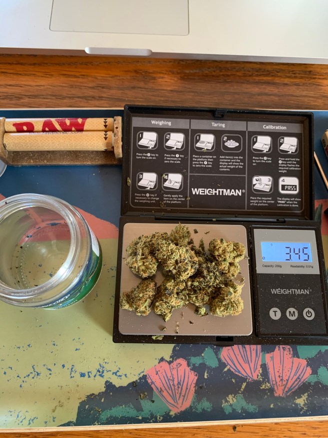 It was my first smoke of the day, after dinner. 7 pm! Too late in the day for first smoke but it’s the holidays and we’re out here visiting my in-laws. There’s too much else going on to slip away, burn one, and come back to the Family all blazed. I also had some items on my to-do list for the day. I wanted to roll a dozen joints, and did. Some are for stuffing stockings, some are for taking back. I have been going through some of the older items in inventory, ready to close some positions out for the end of the year.