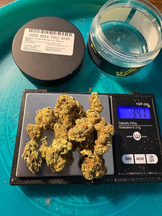 The flower is a nice spark on a cold, dreary day. I was going to roll some joints before I smoked the Clementine. I have .72g of Clementine left. That’s one joint and one bowl. It always feels good to get through an eighth, assuming I have another one on deck.
